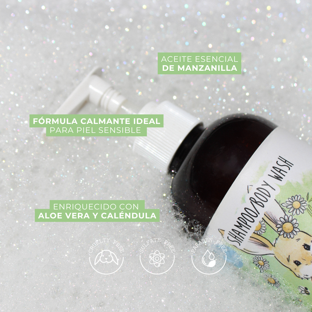 Libre de sulfatos, proporciona una espuma fina y cremosa que mejora la eficacia de limpieza, dejando una sensación de suavidad para la piel y los ojos. Con un suave aroma a manzanilla que brinda una experiencia relajante durante el baño del bebé.